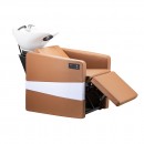 NS:5619M chair back massage function is composed of six groups of air bags, strong massage has a strong sense of pushing back. The best top waist height conforms to ergonomic design, massage air bag can knead the frequent sore fatigue areas, effectively relieve back fatigue, release pressure. Achieve integration of hair washing and massage. NS:5619M is characterized with an extension function, when adjusting the height of the footrest, the seat extends outward, the backrest is also at the same time, so that the customer can approach the flat style seat. Achieve adjustment of semi-lying and sitting multi-angle. Every point of the back, hips, and legs can be fitted to the seat, and the body is perfectly supported. The seat is filled with a high resilience sponge. Enhance the customer experience. Orange is the main color, white atmosphere light is the perfect finishing touch which add a touch of lively interest.